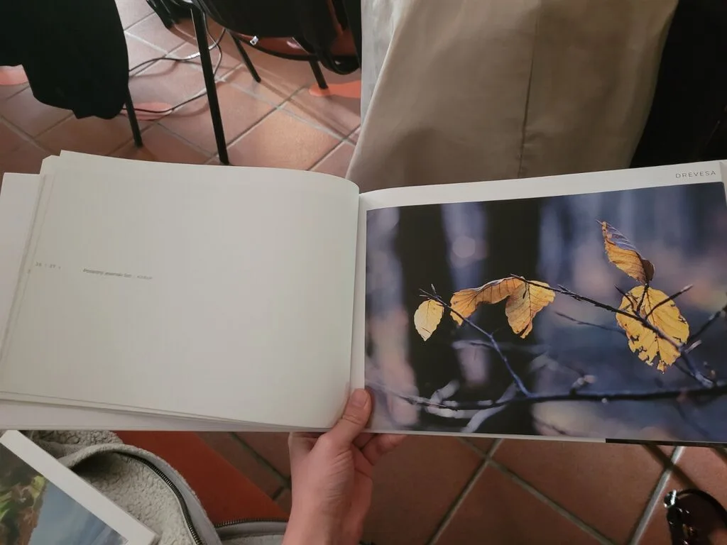 Večer je bil razdeljen na dva dela. V prvem so sodelujoči predstavili nastanek knjige, ki je izšla pri založbi E-besede. Priprava knjige je bila zahtevna, saj je bilo treba iz večjega števila čudovitih fotografij izbrati le nekaj tistih za objavo, hkrati pa izbrati fotografije, ki so Miho najbolj predstavljale. Pri naboru fotografij je pomagala tudi Mihova družina. V knjigi je objavljenih 42 fotografij, ki jih dopolnjujejo krajši zapisi. Pri pripravi knjige je sodelovala večja skupina Mihovih prijateljev, vsak na svojem področju. Med pogovornim omizjem o knjigi so se na platnu poleg predvajale Mihove fotografije.
