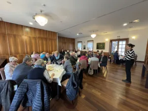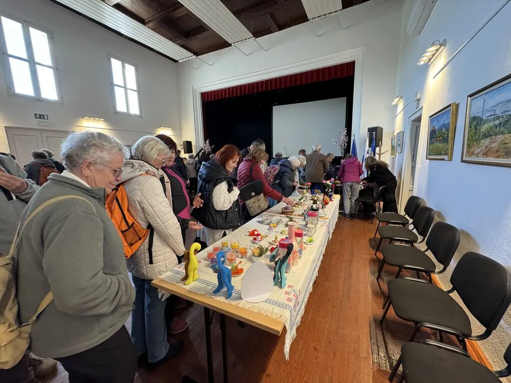 pa so si udeleženci izleta ogledali še razstavo ročnih del, ki so jo v tamkajšnjem Domu kulture pripravile članice Upokojenskega društva Šentrupert. Dan je tako Društvu podeželskih žena Ajda ponudil priložnost za pridobivanje novega znanja, okušanje lokalnih dobrot, spoznavanje bogate dediščine ter prijetno druženje.