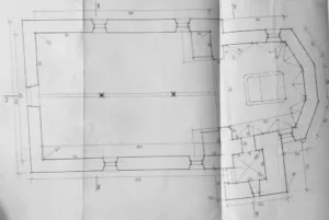 19. Žlaus, tloris in narisi p. c. sv. Nikolaja, Kuren, 1983 (Arhiv ZVKDS OE Ljubljana). V Maroltovi topografiji vrhniške dekanije (Marolt 1929, n. d., str. 66) je tloris (risal Matevž Sitar) zelo poenostavljen.