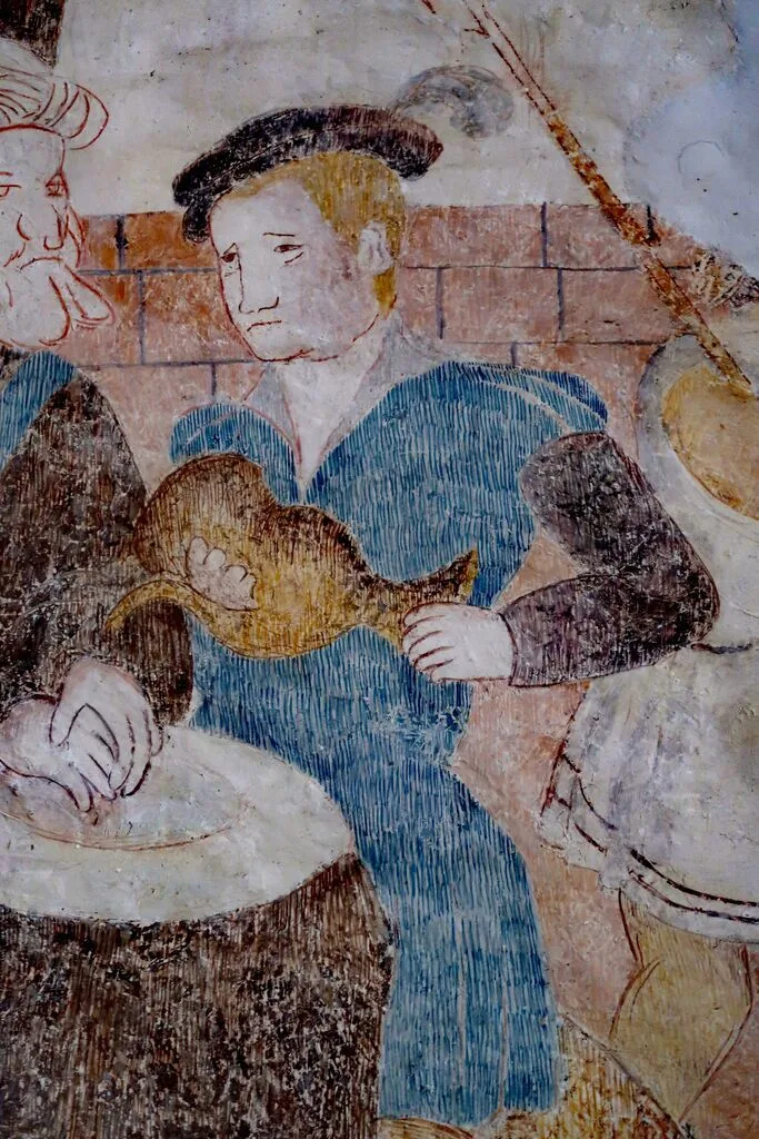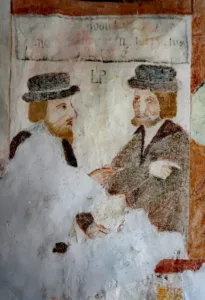 Posebej zanimiv je lik vélikega duhovnika Kajfe na prvem prizoru severne stene, ki ne deluje tipizirano, temveč kaže individualizirane, skoraj portretne značilnosti. S poudarjenimi mesnatimi ustnicami in jajčastimi očmi spominja na upodobitve Martina Luthra (†1546). Zgodovinski kontekst zgodnje reformacije – obsodba Luthrovih tez leta 1520, wormški edikt leta 1521 (z njim Luther razglašen za krivoverca in izobčenca) ter širjenje protestantizma, ki je doseglo tudi Ljubljano – ta je 1525 poleg Trsta postala reformacijsko žarišče (op. 27) – omogoča interpretacijo, da bi lahko naročnik poslikave zavestno naročil takšno ikonografsko aluzijo. V tem okviru bi véliki duhovnik, ki sodeluje pri obsodbi Kristusa, prevzel podobo »lutrovskega« tipa. K širjenju Luthrove podobe je pomembno prispevala grafika, in pa zlasti portreti, ki so prihajali izpod čopiča njegovega osebnega prijatelja, slikarja Lucasa Cranacha st.