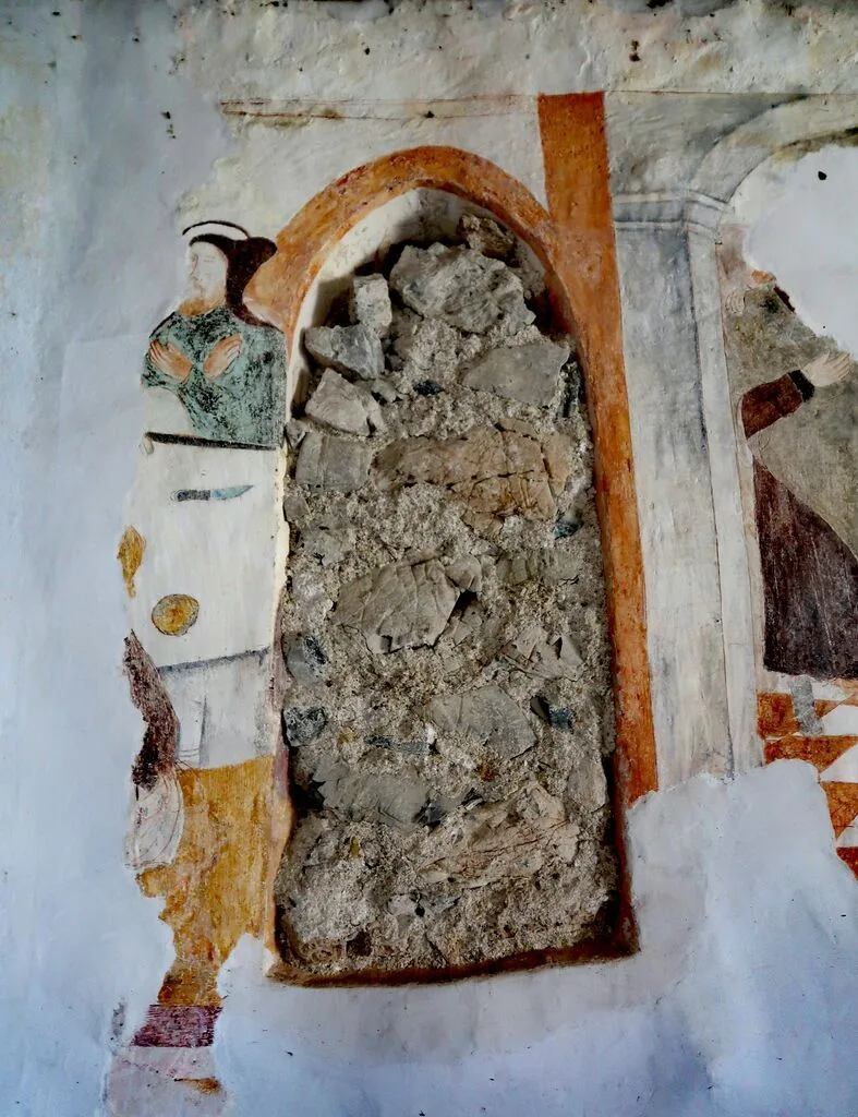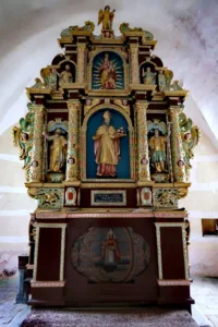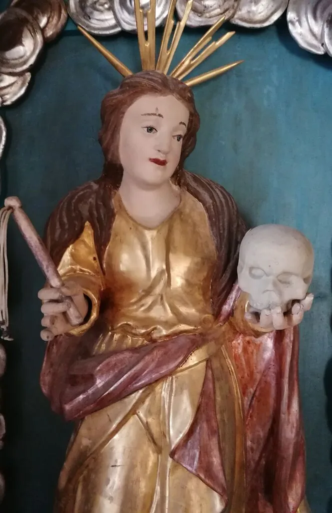 32. Nepravilna identifikacija je pri obnovi oltarja rezultirala v nepravilni poslikavi kipa.
