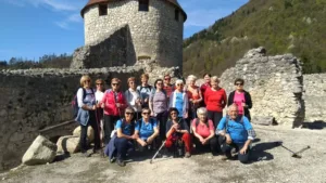 Po obveznem postanku smo se pripeljali do vasi Podvrh, nad katero je videti del obzidja nekoč  mogočnega gradu Žovnek, ki je bil eden najstarejših gradov na Slovenskem.