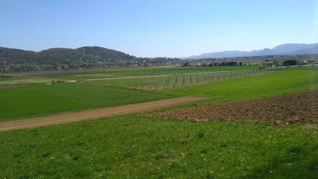 Ob poti smo občudovali že dobro prebujeno naravno, lepo obdelana polja in  velike nasade hmelja.
