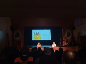 V petek, 10. aprila, je v Kulturnem domu Jakoba Trobca v Polhovem Gradcu potekal pogovorni večer v ciklu dogodkov Na svoji zemlji, ki ga je vodil Janez Koprivec. Dogodek so z uvodnimi skladbami pospremili Šundr banda, ki so med drugim izvedli pesmi iz predstave Pa brez zamere