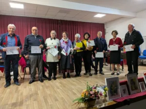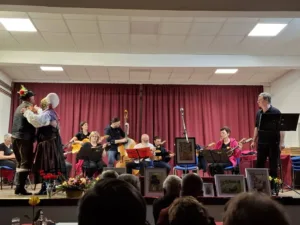 Ob 50-letnici našega društva smo po rednem občnem zboru pripravili manjšo slovesnost, ki so jo otvorili Borovniški tamburaši z valčkom Kam le čas beži. Naša člana sta ob spremljavi zaplesala v narodnih nošah in tako ustvarila prijetno praznično vzdušje.