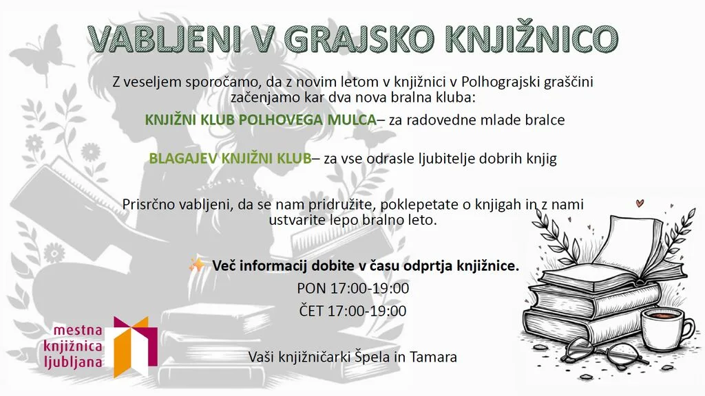 MojaObčina.si Dobrova-Polhov Gradec Blagajev bralni klub Objavljeno na MojaObčina.si Dobrova-Polhov Gradec v Novice, Turizem Vabljeni v Blagajev bralni klub. Več podrobnosti na priloženi “fotografiji”. ←Ustvarjalni delavnici z Emilijo Erbežnik Pregled leta 2025 v Godbi Dobrova-Polhov Gradec→