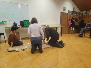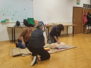 Izobraževanja so bila namenjena vsem občanom, ki želijo obnoviti ali pridobiti osnovna znanja prve pomoči, se naučiti pravilnega izvajanja temeljnih postopkov oživljanja ter spoznati varno in praktično uporabo AED. Na tečaju je bilo najbolj pomembno praktično delo, kjer so udeleženci vadili preverjanje odzivnosti in dihanja, pravilno izvajanje zunanjih stisov prsnega koša v ustreznem ritmu in globini ter pravilno zaporedje ukrepanja ob srčnem zastoju. Naučili so se tudi, kako pravilno namestiti elektrode AED, slediti glasovnim navodilom naprave in varno izvesti električni sunek, kadar je ta potreben.