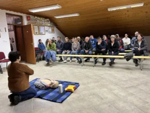 V februarju in marcu so po vseh gasilskih domovih v občini Dobrova – Polhov Gradec potekala brezplačna izobraževanja s področja prve pomoči, temeljnih postopkov oživljanja (TPO) in praktične uporabe avtomatskega defibrilatorja (AED). Pobudo in organizacijo je omogočila Občina Dobrova – Polhov Gradec v sodelovanju s Štabom civilne zaščite Dobrova – Polhov Gradec, Gasilsko zvezo Dolomiti in prostovoljnimi gasilskimi društvi v občini. Tečaje je vodila domačinka Alenka Oven iz Podsmreke, licencirana predavateljica prve pomoči pri Rdečem križu Slovenije, ki se tudi poklicno ukvarja z izobraževanjem na področju prve pomoči. Udeležencem je na strokoven, razumljiv in predvsem praktičen način približala postopke, ki so v primeru nesreče ključnega pomena. Kot poudarja, ob srčnem zastoju šteje vsaka sekunda. Prav znanje oživljanja in pravilne uporabe AED lahko odločilno vpliva na izid ter reši življenje.