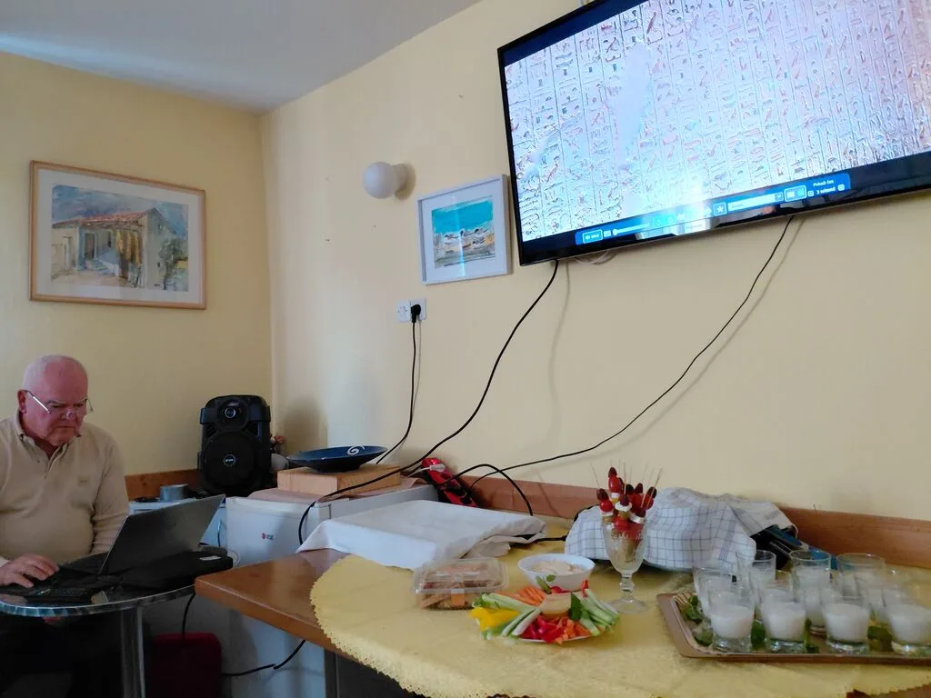 Druženje smo nadaljevali ob pogostitvi z egipčanskimi okusi. Seveda ni manjkal čaj, tokrat iz pravega egipčanskega hibiskusa. Podprli pa smo se tudi s skutino pito (burekom), tradicionalnim osvežilnim napitkom ajran (iz jogurta in vode z dodanimi začimbami). Ker je v egipčanski prehrani močno zastopana zelenjava, sva z Branko pripravili tudi zelenjavne palčke in nabodalca. Ob obloženi mizi je tekel živahen pogovor o vtisih, ki jih je pričarala predstavitev Egipta. Bili smo si enotni, da nas takšna srečanja bogatijo in »odpirajo okno v svet«.
