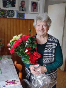 V jesenske barve odetem mesecu oktobru sta svojih 90 let praznovali naši dolgoletni članici, gospa Kati Rajković, ki je sedaj stanovalka Doma upokojencev Vrhnika, in gospa Terezija Nikolčić. Prostovoljke projekta Starejši za starejše in predsednica društva smo ju obiskale in jima ob tem podarile šopek cvetja ter v imenu vseh zaželele veliko zdravja in dobre volje. Besedilo: Vesna Stare Foto: Fani Al-Mansour
