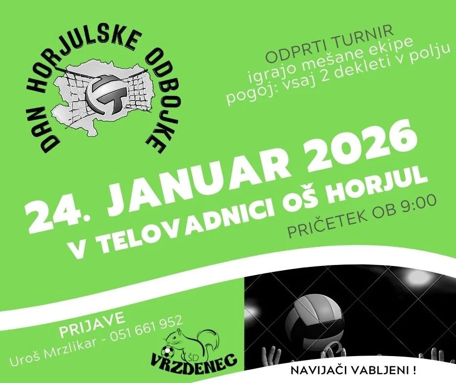 MojaObčina.si Horjul DAN HORJULSKE ODBOJKE Objavljeno na MojaObčina.si Horjul v Dogodki, Novice, Obvestila, Šport Spoštovani, ŠD Vrzdenec vas vabi na DAN HORJULSKE ODBOJKE, ki bo v soboto, 24.1.2026, v telovadnici OŠ Horjul. Začetek ob 9. uri. ←Ura pravljic v januarju Tradicionalni novoletni pohod na Vrhe→