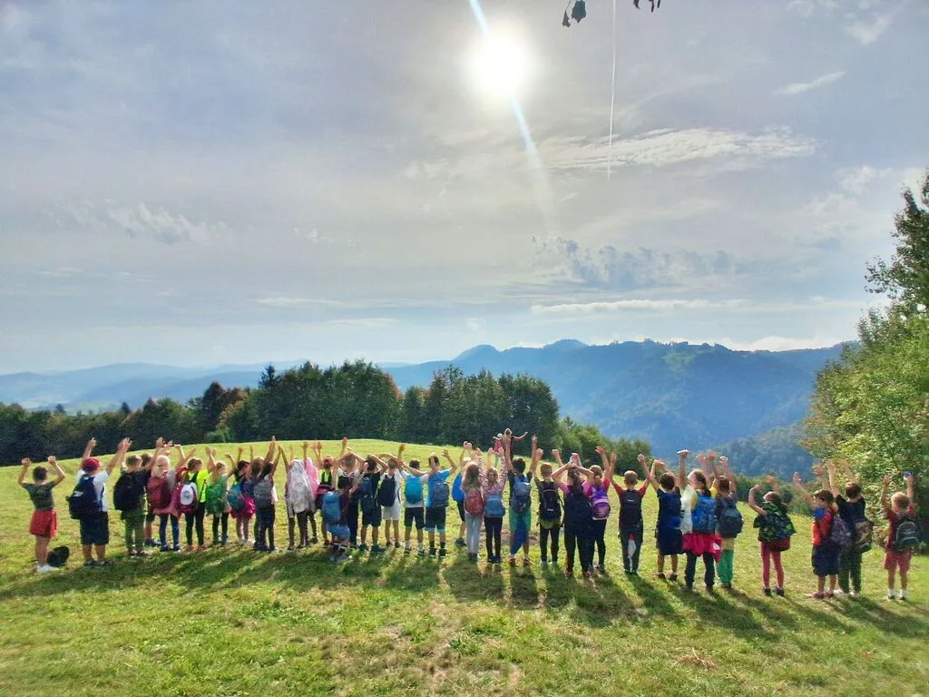 Učenci razredne stopnje so dan preživeli na prostem. Takole so zapisale učiteljice: “V torek, 23. 9. 2025, smo se prvošolci odpravili na jesenski pohod. K prijetnemu druženju ob hoji do Setnice smo povabili tudi starše in stare starše. Vabilu so se odzvali mamice, babice, dedki in celo prababica. Preživeli smo sproščen medgeneracijski dopoldan in si obljubili, da se bomo še kdaj podružili.”