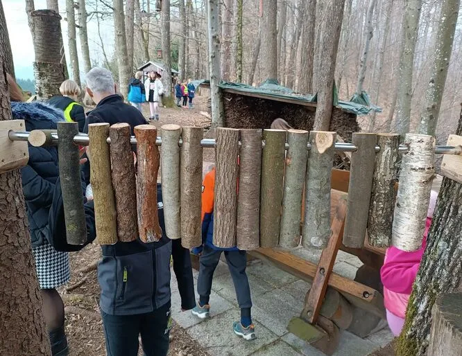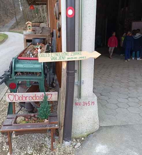 Seznanili smo se z drevesnimi vrstami naših gozdov, tudi ta naravoslovna zbirka se nahaja ob muzejski hiški. Natekali smo se, se skrivali med drevjem in raziskovali mali gozdni raj, ne da bi nas kdo priganjal. Proti poldnevu smo se odpravili nazaj v dolino. Spotoma smo si v gospodarskem poslopju Podstajnške domačije ogledali zbirko rokodelskega in kmetijskega orodja. Izdelale so ga marljive roke naših prednikov, uporabljali so ga prebivalci horjulske doline in okoliških hribov takrat, ko je čas tekel počasneje, ljudje so se še poznali med seboj in hodili drug drugemu v vas.
