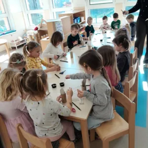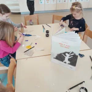 Po poslušanju so tako otroci iz vrtca kot podružnične šole zgodbo še ustvarjalno podoživeli z likovnim ustvarjanjem. Ob tem so razvijali svojo domišljijo, ročne spretnosti in hkrati utrjevali sporočilo zgodbe.