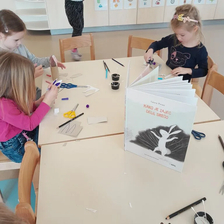 V vrtcu Log – Dragomer je v skupini otrok, starih od 4 do 5 let, potekala prav posebna pravljična urica na kateri so otroci prisluhnili zgodbi Laure Petan Kako je zajec delil srečo, ki na topel in razumljiv način odpira pomembne življenjske teme o deljenju, prijateljstvu in sreči.