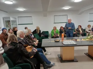 Občina Log – Dragomer, 17. december 2025: v prijetnem decembrskem večeru je bil prostor Spominske sobe v prostorih Občine Log – Dragomer napolnjen z barvami, črtami in tihimi zgodbami, ujetimi na papir. Odprtje razstave likovnih del Vilme Simončič je obiskovalcem ponudilo vpogled v ustvarjalni svet avtorice, za katero je likovno izražanje že od otroštva naraven in iskren način sporazumevanja s svetom.