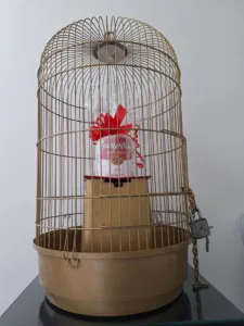 Mateja Bitenc na razstavi sodeluje z instalacijo, ki jo je poimenovala Ujetost v zlate iluzije. Njeno delo temelji na raziskovanju ter uporabi rabljenih, zavrženih, odpadnih, »neumetniških« materialov in najdenih predmetov: ti so v likovni kompoziciji, ki je na ogled, dobili popolnoma nov videz in pomen. Vsebinsko obravnava teme, povezane z okoljsko problematiko, trajnostnim razvojem in umeščenostjo človeka v sodobno potrošniško družbo. Njeno delo spremlja tudi kritičen razmislek o navedenih temah, ki ga avtorica zaključi s provokativnim vprašanjem za gledalca, ki naj (se) odloči, kaj je (zanj) zlato in kaj je gnoj: »So zlato krave na paši ali travniki, polni sončnih panelov?«
