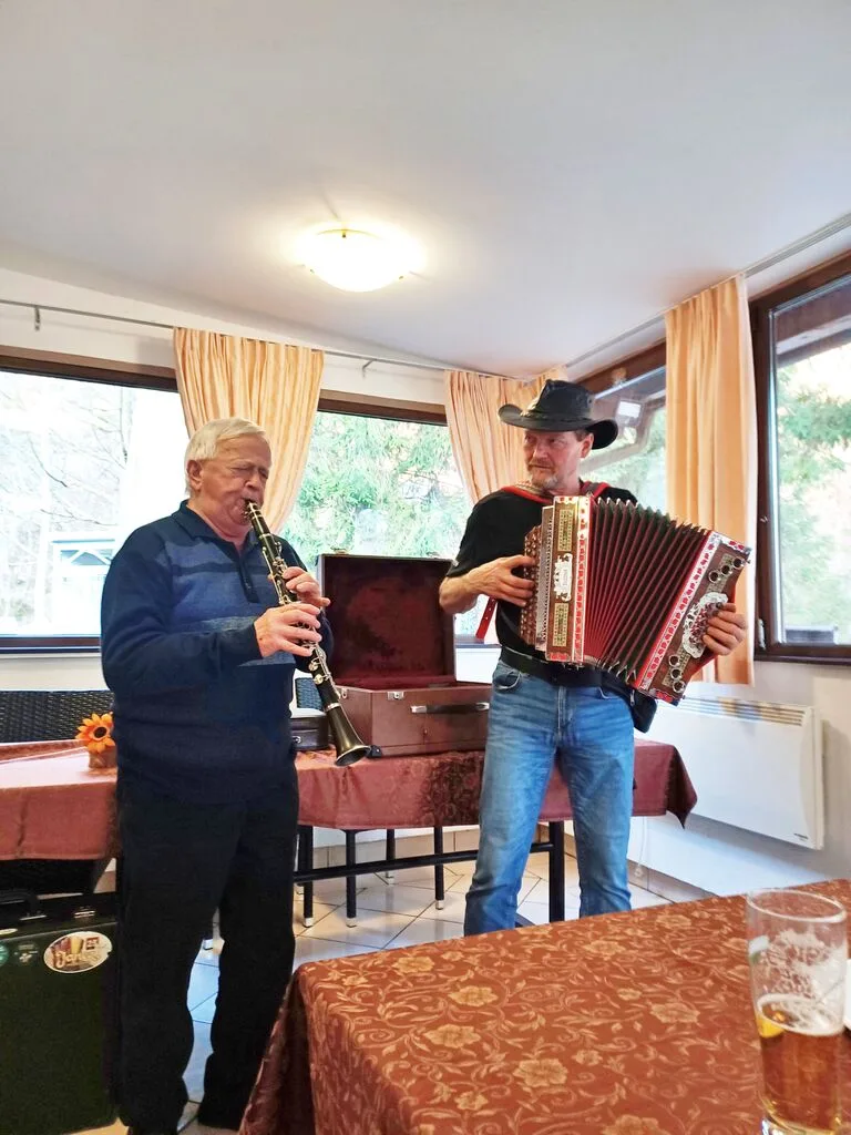 Za prijetno glasbeno vzdušje pa sta poskrbela Franci Trobec s klarinetom in Štefan Plahanc s harmoniko. Tako smo dodali nov pisan list v polhograjski barviti jeseni življenja.
