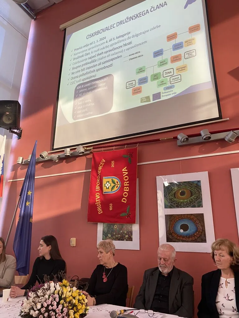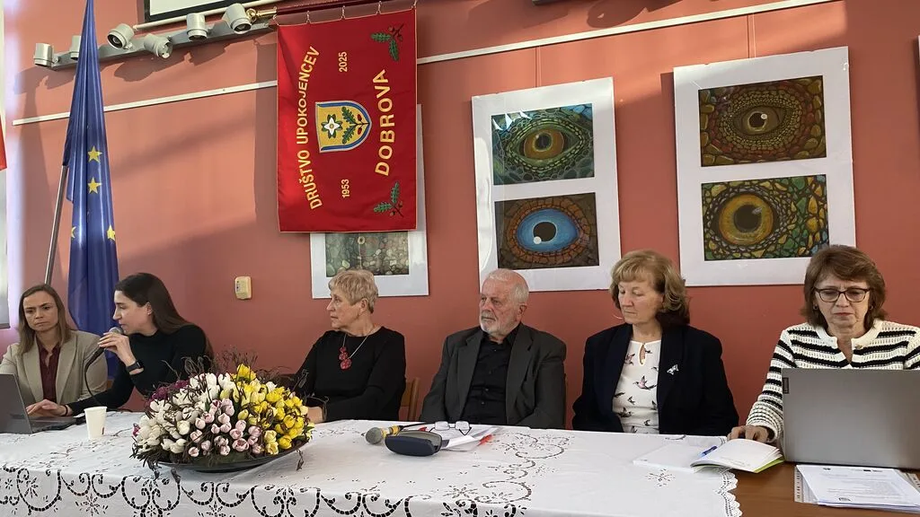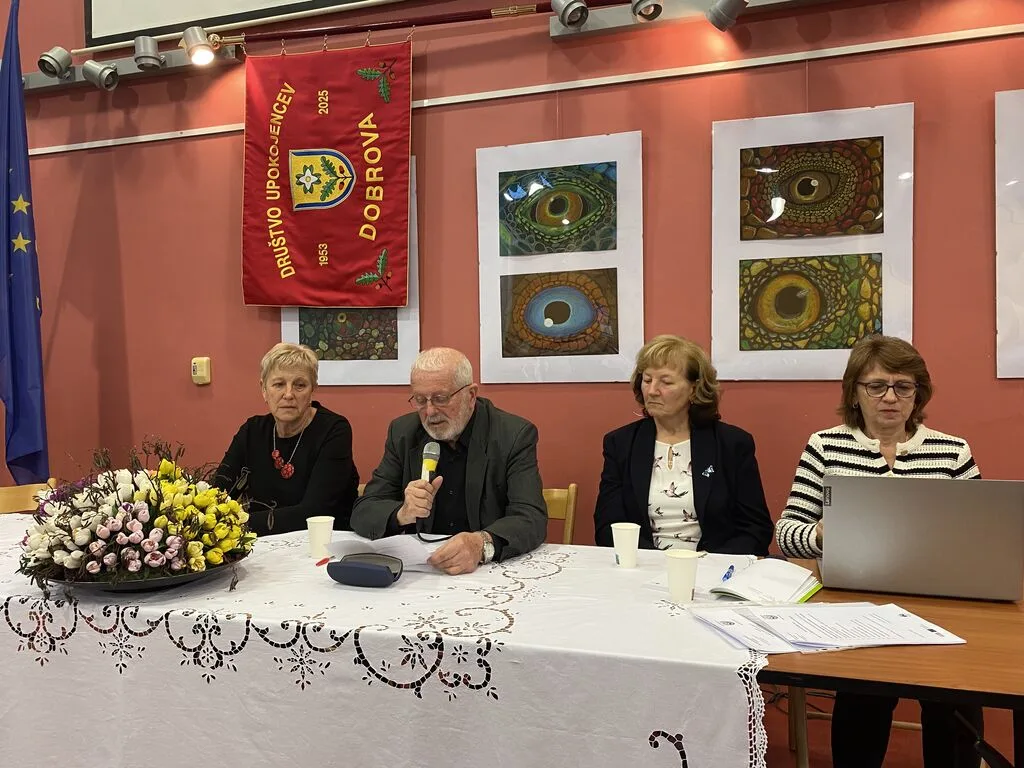 Dobrova, 13. februar  Občni zbor smo začeli z lepim  glasbenim pozdravom, v katerem sta nastopili učenki Glasbene šole Emil Adamič. V nadaljevanju sta nam predstavnici Ministrstva za solidarno prihodnost predstavili sistem dolgotrajne oskrbe in sicer, kako se vključimo in katere pravice imamo. Polurna nazorna in zanimiva predstavitev je hitro minila in prejeli smo tudi pisno gradivo. Sledila je izvolitev delovnega predsedstva, zapisnikarja, overovitelja zapisnika in verifikacijske  volilne komisije. Predsednik delovnega predsedstva Vinko Kuder je poskrbel, da je občni zbor potekal skladno s pravili in z dnevnim redom. V nadaljevanju smo se spomnili  z  minuto tišine na naše preminule člane v letu 2025 in 2026 in nato so sledila poročila: poročilo o delu v letu 2025, finančno poročilo, poročilo nadzornega odbora in poročilo častnega razsodišča. Ob zaključku poročila o delu v 2025 se je predsednik Anton Grosek iskreno zahvalil vsem poverjenikom in prostovoljcem, praporščakom in sodelavkam za njihovo nesebično in prostovoljno delo v skupno dobro. Soglasno smo ugotovili, da je bilo tudi leto 2025 polno zanimivih društvenih aktivnosti od pohodništva, raznovrstne rekreacije, aktivnosti na področju kulture, izletov in ekskurzij do skrbi za sočloveka. Z glasovanjem smo soglasno sprejeli vsa poročila in načrt dela v letu  2026. V skladu z dnevnim redom smo izvedli tudi nadomestne volitve za dva člana upravnega odbora. In nato je sledil lep pozdravni nagovor predsednika Krajevne skupnosti Dobrova Marjana Pograjca, ki je orisal pomembnost društva v življenju in delu krajevne skupnosti in nas  povabil k aktivni udeležbi pri pripravi participativnega proračuna občine za leto 2026 ter se društvu zahvalil za aktivno delovanje in za skrb za sočloveka. Pred zaključkom  občnega zbora se nam je pridružil župan Jure Dolinar, ki je bil pred tem zadržan in nas tudi  povabil  k aktivni udeležbi pri pripravi participativnega proračuna občine. Toplo se je zahvalil “mladim po srcu” za aktivno delovanje v skupno dobro  in za skrb za sočloveka in nam zaželel uspešno realizacijo društvenega programa tudi v letu 2026.  Ob koncu občnega zbora so nas pozdravili predsedniki sosednjih društev  in  Mirko Jarc, predsednik Območne zveze DU Ljubljana Vič – Rudnik. Po zaključku Občnega zbora je sledilo družabno srečanje s pogostitvijo. Okusno hrano so pripravili PR’ PREK in posladkali smo se z odličnimi krofi  “Tvojih 5 minut”, ki nam jih je doniralo podjetje Don Don. Tudi letos smo  nazdravili z izvirsko vodo in sadnim sokom ter čajem,  vinska zdravica pa sledi na društvenem pikniku 27. maja 2026 ob 13:30 Pr’ Prek v Šujici.