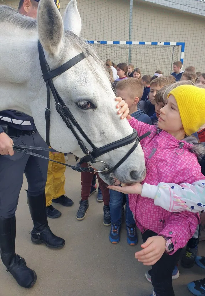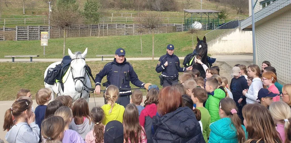 V torek, 3. marca, smo na OŠ Horjul doživeli prav poseben dan. Obiskala sta nas policista konjenika, ki sta skupaj s svojim policijskim konjem učencem na prijazen in zanimiv način predstavila svoje delo. Učenci so z velikim zanimanjem poslušali, kako poteka delo policista konjenika, kje vse pomagajo policijski konji ter zakaj je njihova prisotnost pomembna pri zagotavljanju varnosti. Poudarila sta, da konj ni le pomočnik, temveč partner, s katerim mora policist zgraditi zaupanje, spoštovanje in dobro sodelovanje. Poseben del obiska je bil namenjen neposrednemu stiku s konjem. Učencem sta dovolila, da so lahko konja pobožali, mu ponudili priboljške ter ga pobliže spoznali. Mnogi so prvič tako od blizu videli policijskega konja in bili navdušeni nad njegovo mirnostjo in poslušnostjo. Spoznali smo tudi, koliko truda in vsakodnevnega dela je potrebnega za šolanje konja ter kako pomembna sta medsebojno zaupanje in spoštovanje med policistom in živaljo.