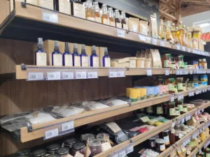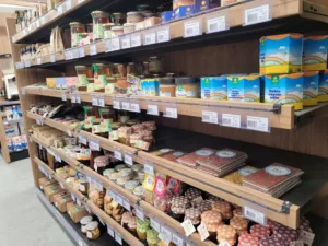 Pomemben del trgovine predstavlja domači kotiček, kjer so na voljo dobrote lokalnih kmetij in slovenskih dobaviteljev. S tem zadruga spodbuja lokalno pridelavo in potrošnikom omogoča dostop do svežih, kakovostnih domačih izdelkov. V ponudbi so med drugim sveže mleko, jajca, marmelade, kruh, sokovi, žganja, zelišča, med in drugi domači proizvodi.
