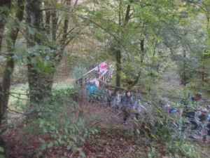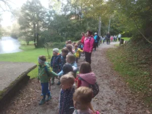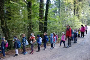 V četrtek, 2. 10. 2025, smo se z otroki s skupin Čebele, Murni in Metulji odpeljali na Vrhniko, natančneje do Verda, kjer se je začel naš pohod. Tudi tokrat so se z nami na pot podali člani Planinskega društva Horjul. Na Verdu smo izstopili iz avtobusov pri galeriji Kašča, saj je bila naša zastavljena pot preozka za avtobus. Podali smo se skozi Verd mimo plezališča v Retovju pogledat enega od izvirov Velike Ljubljanice pri Velikem Okencu in naprej do Mirk. Kljub začetnim toplim sončnim žarkom, ki so nas pospremili na pot, so nam trakovi in kape ter topla oblačila pri hoji po gozdu in čez mostičke prišla prav. Iz Mirk smo šli v Močilnik ob Mali Ljubljanici in si ogledali njen izvir. Za prvi planinski izlet v tem šolskem letu ta izlet ni bil zahteven, saj so ga brez težav zmogli prehoditi vsi otroci. V letošnjem šolskem letu se bomo skupaj s člani Planinskega društva Horjul podali še na Zimski pohod v okolici vrtca, povzpeli se bomo na Sv. Urha ter se zapeljali v Kekčevo deželo. Mi se že veselimo novih pohodniških izzivov, članom Planinskega društva Horjul pa se že v naprej zahvaljujemo za čas, pripravljenost in dobro voljo, ki jo pokažejo, ko se z nami odpravijo na izlet.