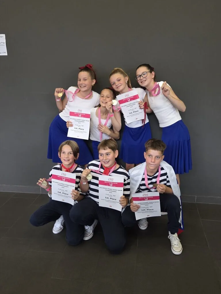 “Kadar plešeš, lahko uživaš v tem razkošju, da si to, kar si”, je zapisal pisatelj Paulo Coelho.                               Nika in Nejc Rus sta sestra in brat z Drenovega Griča. Sta učenka in učenec sedmega oziroma petega razreda OŠ Antona Martina Slomška na Vrhniki. Že več let trenirata hip hop in street show dance v plesnem klubu Plesno mesto iz Ljublajane.                                                                                                                         Plesno mesto, ki sta ga pred 35 leti ustanovila Marko Hren in Anita Vihtelič, je eden vodilnih plesnih klubov v Sloveniji. Klub je skozi desetletja ustvaril številne državne, evropske in svetovne prvake.  Pomembno vlogo ima tudi na Vrhniki, kjer je že dolga leta prisoten – tako v vrtcih kot na osnovnih šolah, s plesnimi programi, krožki in predstavitvami.  Prvi veliki uspeh so pod vodstvom trenerke Darja Kersnič dosegle prav hip hop plesalke z Vrhnike. Leta 2003, so v Poznanu na Poljskem, postale evropske prvakinje, nato pa v nemškem Bremnu osvojile še 4. mesto na svetovnem prvenstvu.  Med sedmimi plesalkami je bila tudi Špela Rus (takrat še Lenarčič), danes mamica Nike in Nejca. Njena otroka pa sedaj nadaljujeta tradicijo in pišeta novo poglavje uspehov Plesnega mesta.  Nika je začela plesati že kot triletna deklica, rekreativno, a s prihodom mlajšega brata Nejca v plesno dvorano, pred tremi leti, sta začela resneje trenirati. Skupaj sta se hitro vključila v veliko formacijo (skupina do 24 plesalcev) in že lani z ekipo osvojila naslov državnih prvakov. S tem uspehom so se plesalci uvrstili na svetovno prvenstvo “World Street Dance Show” v Skopju, kjer so zmagali in postali svetovni prvaki. Za sezono 2024/25 so si postavili jasen cilj – ubraniti svetovni naslov. Nika in Nejc sta začela tekmovati tudi kot par v plesu v dvojicah, poleg tega pa sta še naprej trenirala v veliki formaciji. Nejc se je pridružil tudi mali formaciji (7 plesalcev), kar je pomenilo veliko odrekanja, treningov in vsakodnevnih voženj v Ljubljano. V sezoni sta sodelovala na številnih nastopih, med drugimi tudi pri snemanju glasbenega spota “Kako lep je ta svet” z Damjano Golavšek in pevskim zborom OŠ Log -Dragomer. Proti koncu plesne sezone so se treningi iz treh na teden povečali na štiri, pred tekmovanji tudi do šestkrat tedensko. Na državnem prvesnstvu konec letošnjega junija v Novem mestu, sta nastopila v plesu dvojic; Nejc (v paru z Majem Puntarjem) in Nika (v paru z Dorotejo Omerzel), sta osvojila 4. in 6. mesto. Nejc je postal dvakratni državni prvak; v mali formaciji in v veliki formaciji, kjer plešeta oba z Niko. To jima je zagotovilo nastop na svetovnem prvenstvu v Osnabrucku v Nemčiji.  Tik pred tem velikim nastopom, je Nejc s soplesalko in skupino starejših plesalk Plesnega mesta nastopil še na državni prireditvi ob dnevu Civilne obrambe na Brdu pri Kranju. S koreografijo na pesem “Slovenskega naroda sin” in deklamacijo o domovini Sloveniji je tako nastopil pred državnimi predtavniki.  Nato je sledil vrhunec plesnega dogajanja v tej sezoni, nastop v Nemčiji.  4. in 5. oktobra 2025 je šlo za res. Nejc je že prvi dan z malo formacijo navdušil in osvojil naslov svetovnega prvaka. Dan za tem, pa sta skupaj z Niko zaplesala in zablestela še v veliki formaciji in tudi tam osvojila in ubranila naslov svetovnih plesnih prvakov.  Nejc se je tako domov vrnil z dvema, Nika pa z eno zlato medaljo.  Vse čestitke Niki in Nejcu, njunima trenerjema Maruši Krušič in Maticu Bocu, celotni ekipi Plesnega mesta in nenazadnje staršem, ki plesalcem omogočajo treninge ter jih spodbujajo in spremljajo na vseh nastopih. Naj se plesna pravljica pod okriljem Plesnega mesta in ljubezen do plesa nadaljuje, kajti kot je zapisal Albert Einsteien: “Plesalci so Božji športniki”.
