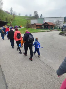 Vsak od nas je prijel za roko svojo babico, dedka ali pa kar oba in odpravili smo se na pot. Na čelu kolone sta bila Klemnova babica Irena in dedek Janez, ker je Janez planinec, je vodil naš pohod. Odpravili smo se mimo Bitncove domačije, čez grič, do Baša. Tam smo zavili levo in jo mahnili proti Lipalci. Med potjo smo se pogovarjali, kje vse smo že hodili in se spraševali, kam bi še šli. Vmes smo si tudi malo oddahnili in se malce osvežili. Čez Miklnov most smo prečkali Horjulščico, nato pa zakorakali nazaj proti Horjulu in gor na Staje. Tam smo se z babicami in dedki poigrali v gozdu, jim pokazali vse skrite kotičke v okolici, tudi jazbečev brlog. Oni pa so nam povedali tudi kakšno dogodivščino iz njihovega otroštva. Skupaj smo občudovali lepo horjulsko dolino. Klemnov dedek nam je razkazal svojo zbirko na Stajah, nato pa nas je povabil še v svoj muzej, kjer smo si ogledali še drugi del zbirke, ki jo skrbno sestavlja že leta.
