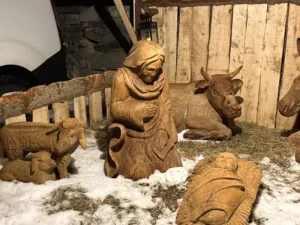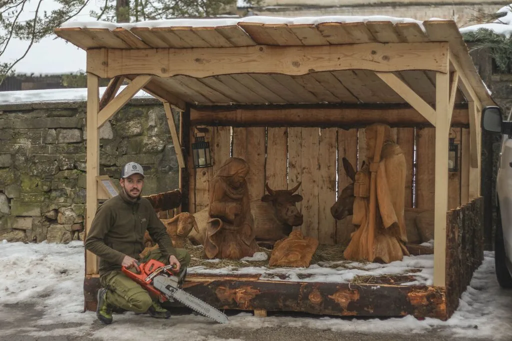 Idej za postavljanje jaslic v zadnjem času po vsej Sloveniji nima meja, tudi izbira materialov je raznolika. Matej je svoje izdelal iz kosov lesa, pri oblikovanju pa je uporabljal motorno žago. Njegovo delo v Našem časopisu že poznamo in vemo, da je vedno bolj oblikoval živalske figure, želel pa si je tudi človeške. Pa mu je prišlo na misel, da bi izdelal kar sveto družino, pri tem pa je želel pripraviti še presenečenje za domače. »Vse je bilo v tajnosti, zadeve sem pokrival, 14 dni sem to delal pod kozolcem. Jožefa, Marijo, Jezusa in ovčko. Eno soboto sem doma začel postavljati štalico, pa so kaj kmalu začeli ugotavljati, kaj bi lahko bilo. In navdušenje je bilo veliko.«