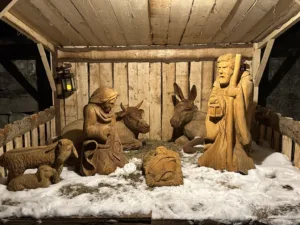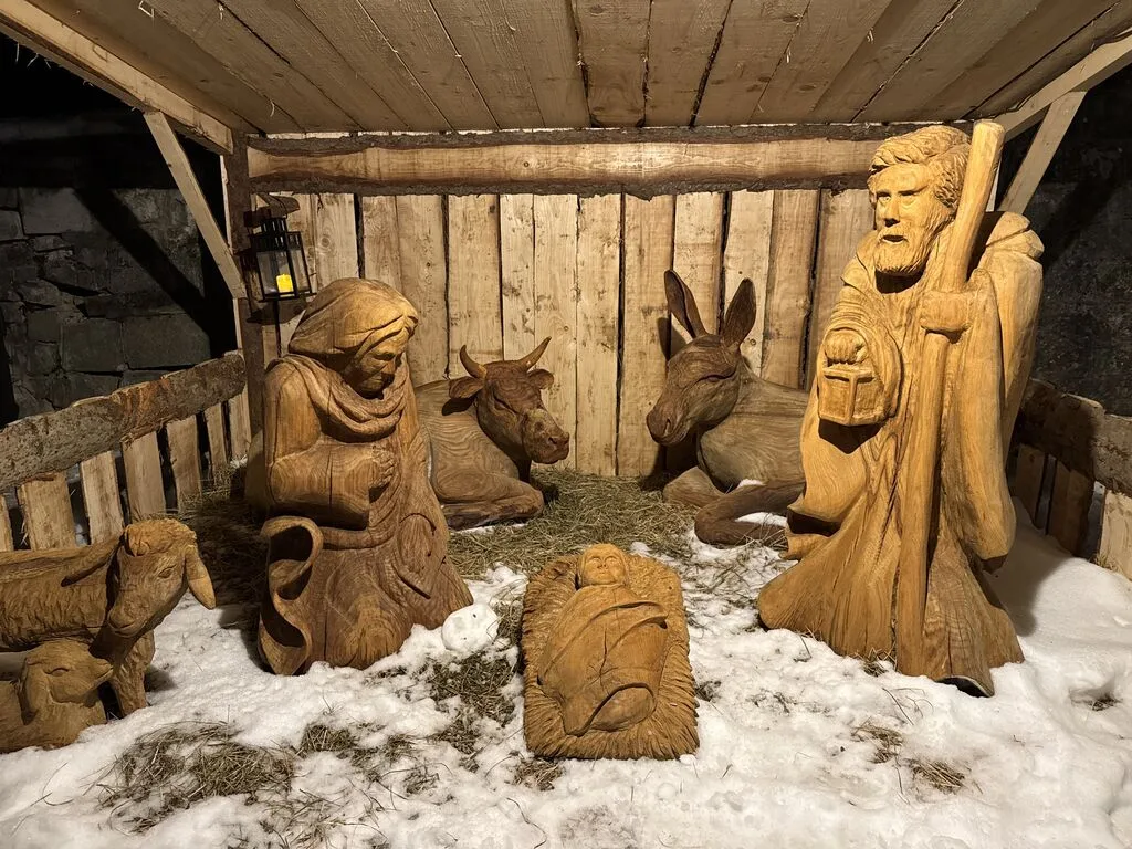 Te jaslice je izdelal in postavil že leta 2024, pred domačim pragom in tako je takrat le malokdo lahko občudoval njegovo umetniško delo. So bili pa zato odzivi tako dobri in navdušujoči, da je prišlo še do ideje, da bi jaslice za naslednjič postavili v središče kraja. In le kje je prostor bolj primeren za to, kot pa pred domačo cerkvijo. Postavil je hlevček, v njem potresel slamo in nanjo postavil figure. Letos je izdelal še kravo in osla. Pridejo naslednji božič še sveti trije kralji? 🙂