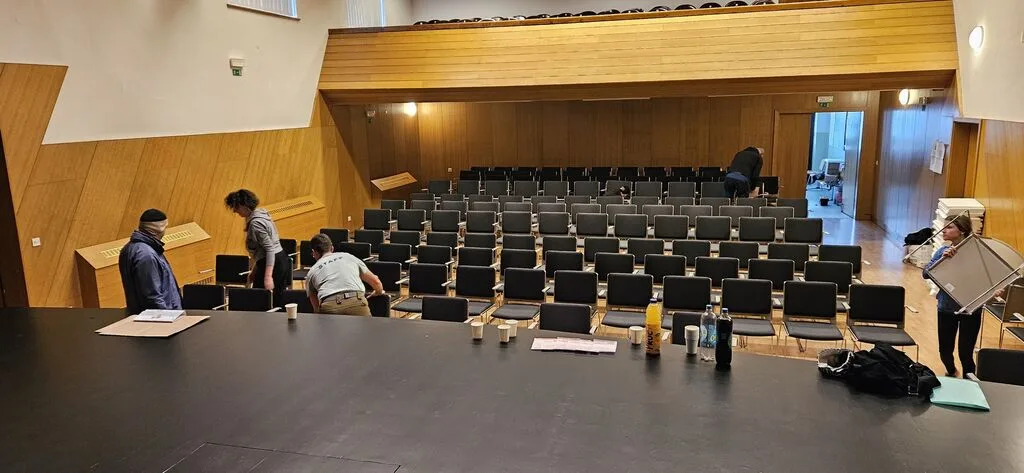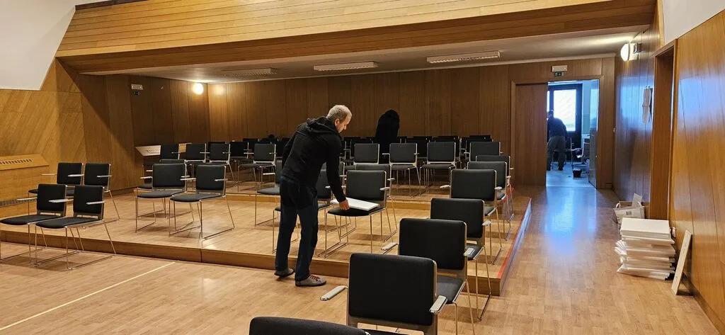 Prenova sedišč in odra v dvorani v Polhovem Gradcu