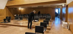Odstranjevanje starih klopi, ki so bile v dvorani več kot 50 let in so jih preselili v hlev župnišča, je potekalo v soboto, 6. decembra. Pri delu je sodelovalo približno 40 prostovoljcev iz sodelujočih društev, ki so ob tem tudi temeljito počistili dvorano in pripravili oder na prenovo. Montaža novih stolov je sledila teden dni kasneje, 13. decembra, pri čemer je sodelovalo osem članov Dramskega društva Neptun.