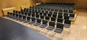 Čeprav so bile stare klopi glede na svojo starost še vedno v solidnem stanju, so bile za sodobne potrebe že precej neudobne, neoblazinjene in nepraktične. Novi stoli omogočajo hitro demontažo, enostavno zlaganje ter medsebojno spenjanje, kar omogoča urejeno postavitev sedišč in večjo prilagodljivost prostora različnim vrstam dogodkov.