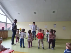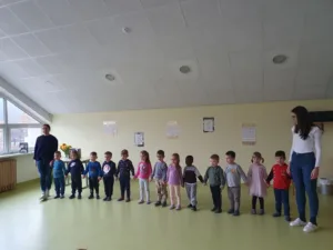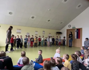 Začetek februarja je v vrtcu vsako leto prežet s kulturo in pripravami na prireditev, ki smo jo letos izvedli 6. 2. 2026. Telovadnico smo okrasili s citati del Franceta Prešerna in njegovimi portreti, ki so jih izdelali otroci, obesili smo slovensko zastavo in razstavili nekaj knjig.