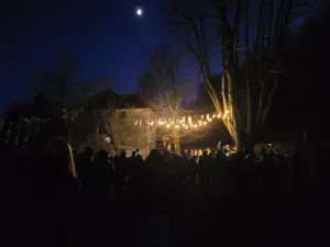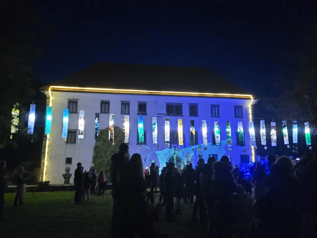 Po prižigu lučk so zbrani lahko občudovali lampijone, ki so jih ustvarili učenci, ter si ogledali svetlobno projekcijo skic na stenah graščine. Po končanem programu je sledilo druženje ob dobri hrani in pijači izpod rok Turističnega društva Polhov Gradec.