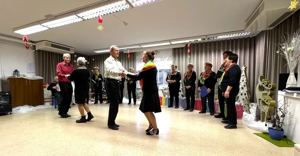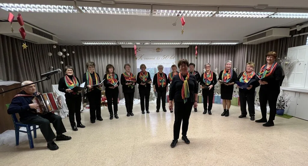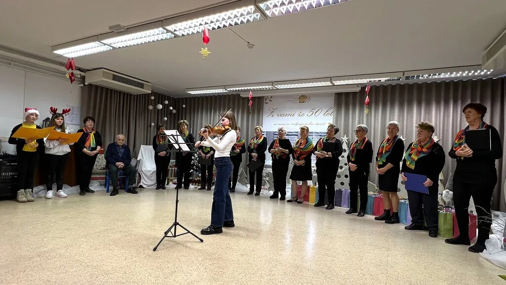 V sredo, 17. decembra 2025, smo prostovoljke projekta Starejši za starejše in članice socialne komisije obiskale naše članice in člane v Domu upokojencev Vrhnika. Članice Pevskega zbora našega društva, učenke in učenci Osnovne šole Antona Martina Slomška in njihove mentorice so pripravili vsak svoj del programa in tako razveseli vse prisotne v večnamenskemu prostoru Doma. Po končanem programu nas je obiskal dedek Mraz in obdaril najprej nastopajoče otroke in mentorice, nato še prisotne članice in člane. Vse tiste, ki niso bili prisotni pri programu, smo obiskali in obdarili v njihovih sobah. Letos smo v spremstvu dedka Mraza obiskali tudi enoto Doma upokojencev na Stari Vrhniki. Žal nam je gripa preprečila stik s stanovalci tako, da smo darila samo oddali osebju, ki jih je kasneje razdelilo našim članicam in članu. Zahvaljujemo se osebju Doma upokojencev Vrhnika za pomoč pri izvedbi in vsem nastopajočim. Posebna hvala dedku Mrazu, ki so z veseljem odzove našemu vabilu in popestri predpraznični čas. Zapisala: Vesna Stare Slike: Fani Al-Mansour