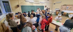 Ples smo tako organizirali v četrtek, 12. 2. 2026. Tudi letos smo poskrbeli za pestro dogajanje. Učiteljice so pripravile zanimive ustvarjalne delavnice: otroci so si lahko izdelali svojega sluzkota ali simpatično žabico. Preizkusili so se lahko v družabni igri štrbunk, če so bili uspešni pri metanju blazinic, so lahko prejeli sladko nagrado. Na plesišču v jedilnici so se pustne maske zavrtele v ritmu številnih znanih pesmi. Ko so se utrdile, so se lahko odžejale s pijačo ali potešile lakoto s slastnimi palačinkami ali krofi.