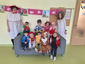 Na težko pričakovano pustovanje smo se začeli pripravljati že nekaj dni prej. Otroci so spoznavali tradicionalne pustne maske, peli pesmice in izdelovali maske. Ugotavljali smo tudi, zakaj praznujemo pustni čas in kakšen pomen imajo pustne šeme. Da norčavost ne bi prehitro minila, smo že prej oblikovali kotičke za šemljenje, kjer so se otroci lahko vživljali v različne vloge, se oblačili v kostume in si nadeli pustne pripomočke.