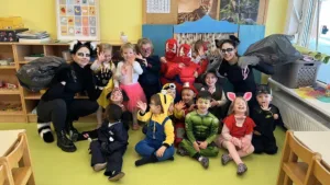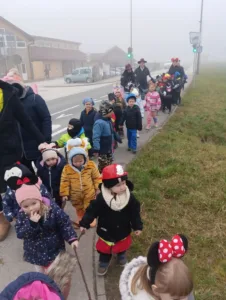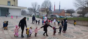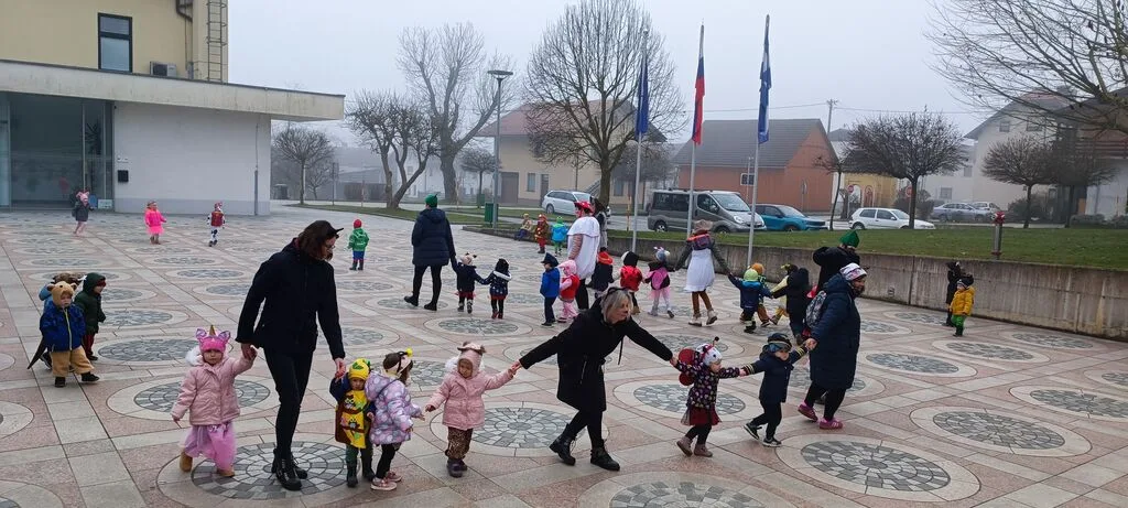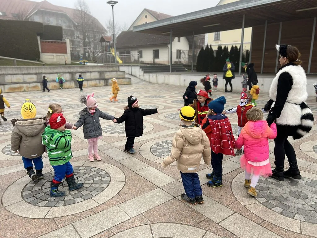 Na pustni torek, 17. februarja, so v naš vrtec prišle prekrasne maškare. Otroci so se prelevili v princeske, vile, metuljčice, čebelice, gasilce, policiste ter hrabre junake. Najmlajše pustne šeme so se zabavale v telovadnici v vrtcu, kjer so plesale in rajale ter se igrale z baloni. Starejši otroci so se ob spremljavi malih glasbil in glasbe odpravili na pustno povorko po Horjulu in tako odganjali zimo. Ob tem smo prepevali pustne pesmi. Najprej smo razveselili zaposlene na Občini Horjul, nekaj pustnih šem je ostalo na občinskem trgu, kjer ni manjkalo rajanja, razigranosti, druženja, smeha in dobre volje, ostali pa so se odločili, da nadaljujejo s pustno povorko po Horjulu ter tako še naprej razveseljujejo ljudi, odganjajo zimo in prikličejo pomlad.