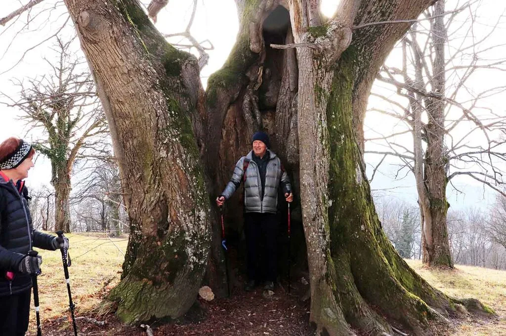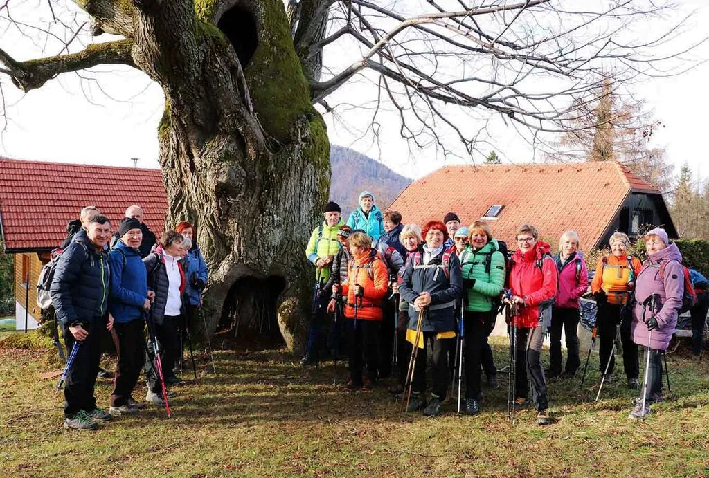 Dom na Šmohorju je bil v naše veliko zadovoljstvo odprt. Pogreli in odpočili smo se ob kavi, nato pa se sprehodili do bližnje cerkve sv. Mohorja, kjer stojita dve starodavni lipi, ki sta pričeli rasti v poznem srednjem veku. Imenujejo ju turški lipi, ker sta doživeli turške vdore na naše ozemlje. Obe lipi sta votli, vendar vitalni, s široko razprostrtima krošnjama.