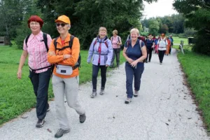 Septembra začnemo upokojenske pohodne skupine uresničevati jesenski del programa. Sončki smo se uspeli podati na pohod le enkrat, saj se je sicer lepo in toplo jesensko vreme prav na naš »pohodni dan« umaknilo dežju. Tako smo prvi torek ostali kar doma, saj je že zjutraj krepko deževalo. Za naslednji naš torkov pohod pa je fronta svoj prihod toliko zamaknila, da smo uspeli prehoditi Gozdno učno pot Draga pri Igu na robu Krajinskega parka Barje. Pot se dviga nad ribniki v Dragi, označujejo jo markacije belega lokvanja. Dolga je dobrih 3 km, je krožna in ni zahtevna. Opremljena je s 27 informativnimi tablami, ki obiskovalcem povedo, katera drevesa rastejo ob poti, opozorijo na manj znane pojave v gozdu in hkrati kažejo smer gibanja.