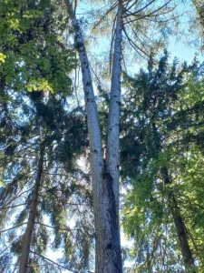 Na poti proti vasi Dobravica, ki leži na najvišji točki, smo šli skozi pretežno bukov gozd, ki pa daje prostor tudi drugim drevesnim vrstam, kot so divje češnje in divje jablane, gorski javorji, gorski bresti, veliki jeseni. Kar precej je bilo tudi hrasta, belega gabra, smreke, lipe in drugega drevja. Najdemo tudi drevesa toploljubnega gozda, kot so rdeči bor, črni gaber in mali jesen. Posebej smo bili pozorni na drevo brek, ki ga je pri nas vse redkeje najti, njegov les pa je primeren za izdelavo glasbil. Pod drevesi pa so nas pozdravljale dišeče ciklame, najbrž bi se našla tudi kakšna goba, če bi se podali z gozdne poti. Pri cerkvi sv. Gregorja v vasi Dobravica so domačini ravnokar žagali divjo jablano in oreh. Prijazna ženica, ki je pobirala lesnike, nam je povedala, da kdaj pa kdaj v bližino vasi zaide tudi kakšen rjavi kosmatinec.