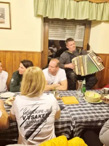 Zvečer ob 18. uri smo, še ob zadnjih žarkih dneva, krenili izpred Gasilskega doma – pogumno in strumno proti vrhu skozi gozd. Zbralo se nas je kar 30, kar je lep dokaz, da se pri nas vedno nekaj dogaja. Otroci so, kot že neštetokrat prej, pokazali, da imajo v nogah več prestav kot odrasli – in so jo seveda ubrali naprej. Prva na vrhu sta bila tudi letos nepremagljiva Tadej Sečnik in Gašper Sečnik. Fantoma očitno hrib ne more do živega! Noč je bila presenetljivo svetla in topla. Luna je tako lepo osvetljevala pot, da lučk skoraj nismo potrebovali – no, razen otroci so komaj čakali, da jih lahko prižgejo. Če že ne zaradi teme, pa zaradi občutka prave nočne avanture! Na cilju nas je zunaj pričakal Slavc z aperitivom dobrodošlice za odrasle in toplim čajem za najmlajše. Ko smo vstopili v notranjost, pa je zadišalo po domači ocvirkovci in bogatem narezku – in takrat je postalo jasno, da je bil vsak korak navkreber še kako vreden truda. Vzdušje? Sproščeno, glasno, veselo. Točno takšno, kot mora biti. Malo kasneje se nam je pridružila še ekipa iz Vaškega odbora, ki je pred našim odhodom, pred vhodom v Zeleno zasadila novo živo mejo – in skupaj smo večer samo še nadgradili. Mislim, da fotografije povedo več kot tisoč besed. Poglejte jih – morda vas prepričajo, da se nam naslednjič pridružite tudi vi. Pri nas ne gre samo za korake v hrib, ampak za skupne korake naprej – za druženje, smeh in občutek pripadnosti. Vrata našega društva so odprta. Pridružite se nam – naslednja luštna zgodba je lahko tudi vaša.