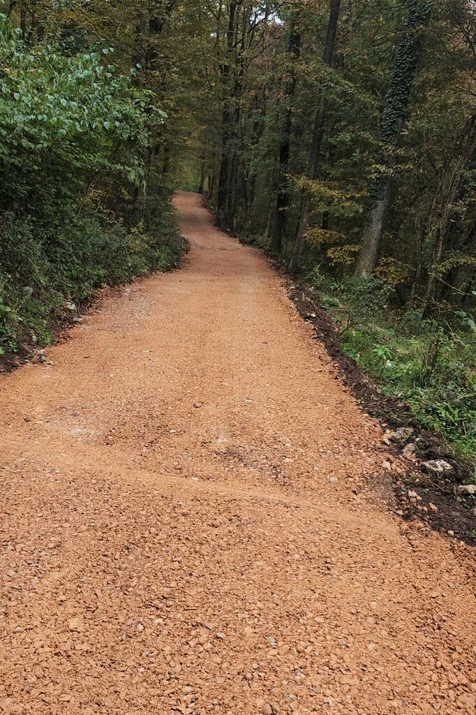 Sredi novembra je bil utrjen in nasut najbolj strm del gozdne ceste, ki na Pakem vodi mimo ostankov nekdanjega viadukta Pako na opuščeno traso železniške proge proti Goričici.