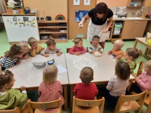 V Župnijskem vrtcu v skupinah vsakoletno obravnavamo različne teme o zdravem načinu življenja, predvsem o zdravi prehrani. Tudi letos smo med 17. in 23. novembrom obeležili »Teden slovenske hrane«. Letošnji slogan tega tedna je bil »Moja izbira je slovenska hrana«. V sklopu tega smo imeli tradicionalni slovenski zajtrk, ki vsako leto poteka vsak tretji petek v novembru, letos je bil torej 21. listopada.