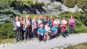V torek, 6. 10. 2025, smo se Vandrovke z vodnikom Jožetom Školcem odpeljale proti Krasu. Seveda je ob poti sledil krajši postanek za jutranjo kavico in potem še vožnja do Štanjela, kjer smo izstopili in se odpravili do vasi Kobdilj, kjer stoji posestvo Vila Fabiani, kjer je rojstna hiša priznanega arhitekta Maksa Fabianija. V čudovitem vrtu med drugim poleg raznobarvnih vrtnic raste mogočna in velikanska murva- najdebelejše sadno drevo v Sloveniji. Na manjši vzpetini nad vasjo stoji cerkev sv. Gregorja, kjer smo si privoščili krajši postanek in si ogledali grobnico Fabianijeve družine.