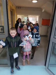 Pri slovenščini smo se v decembru naučili pisati voščila. Kako prikladno! Voščili smo domačim in napisali voščilnice za naše starejše prijatelje. V ponedeljek smo pripravili lep kupček voščilnic, ki smo jih odnesli v Dom starejših občanov v Horjulu. Negovalke so nas pričakale z odprtimi rokami in nas popeljale po domu. Gospem in gospodom smo voščili ob prihajajočih praznikih in jim delili naše voščilnice. V nas je raslo veselje, saj smo čutili hvaležnost gospa in gospodov. Ura je prehitro minila in z zadovoljstvom v srcih smo odšli proti šoli. Po poti smo si delili misli o dobrem, o sreči in veselju. Veseli smo, da smo lahko polepšali dan našim starostnikom in še se bomo vrnili v Dom.