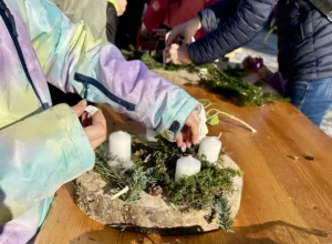 Prvi adventni vikend tega decembra se je začel v duhu ustvarjanja adventnih venčkov pred prvo adventno nedeljo. Običaj prižiganja adventnih sveč imajo mnogi radi, malo manj pa se jih loti samostojnega ustvarjanja, saj jim zmankuje idej in primernega materiala. Tokrat je bilo na enem mestu poskrbljeno za vse – materiale in ideje. Na dolgih ustvarjalnih mizah so imeli nadebudni ustvarjalci (največ je bilo malih otrok v spremstvu enega od staršev) na voljo zelenje, osnove za pletenje, lesene podlage za namizno dekoracijo in nekaj dekorativnega materiala, dodatne dekoracije pa so lahko prinesli tudi s sabo. Izpod malih prstkov so nastajali čudoviti venčki, ki so jih odnesli na domače mize, sam ustvarjalni proces pa je bil tudi lepa priložnost za lovljenje prijetnih družinskih trenutkov.