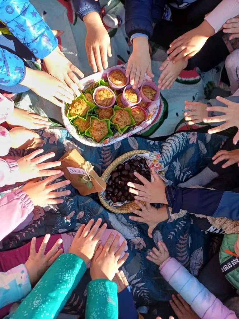 V mesecu oktobru smo se otroci in strokovni delavki skupine Zvezdice iz Župnijskega vrtca odločili, da bomo imeli na en lep sončni petek zeliščni piknik. O zeliščih smo se namreč pogovarjali že lansko šolsko leto. Mala čarovnica Lenčka nam je pomagala, da smo spoznali veliko novih zelišč. Takrat smo jih na naš vrtčevski vrt zasadili kar nekaj, katera smo lahko sedaj uporabili za jedačo in pijačo. Najprej smo zelišča nabrali, jih oprali, pregledali in narezali oziroma nastrigli. Ker se je na vrtu razraslo največ mete, smo jo uporabili za sirup in še za sladico. Sirupa smo se lotili najprej, ker je trajalo nekaj dni, da smo ga pripravili. Nato smo se lotili še zeliščnih mafinov, ki so bili zelo okusni. Za mafine smo uporabili kar smo imeli na vrtu; meto, drobnjak, peteršilj…. Zelišča smo sesekljali na drobne koščke, po receptu zmešali sestavine ter dali peči. Nazadnje smo se lotili še čokolade z meto. Priprava je bila enostavna. Nekaj čokolade smo stopili nad ognjem in vanjo vmešali drobne koščke mete. Nato smo še vročo vlili v modelčke za mafine in pustili do naslednjega dne, da se strdi. Ko smo imeli vse pripravljeno, smo vzeli samo še, kot se za vsak piknik spodobi, košarico in odejo ter se odpravili na naš Župnijski vrt. Da pa smo se ob dobrotah, ki smo jih pripravili v prejšnjih dneh, zelo zabavali, je vsak otrok prinesel s seboj (na listku ali v spominu) en otroški vic. Vseh vam ne moremo napisati, lahko vam pa tistega, ob katerem smo se najbolj nasmejali: ”Slon in miška hodita po puščavi, miš ves čas v slonovi senci in se enkrat oglasi: če ti bo prevroče, se lahko pa malo zamenjava.” Tudi vam svetujemo, da si najdete humorno družbo in se kdaj pa kdaj odpravite kam na lepše na piknik. Hrana in pijača imata takrat čisto drugačen okus! Za konec pa vam prilagamo še recept za zeliščne mafine.
