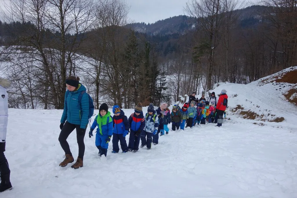 Zima nam je prinesla sneg, katerega smo se v vrtcu zelo razveselili. Sprva načrtovan smučarski tečaj se nam je prestavil, tako da smo zgrabili priložnost in se na hitro odločili, da se odpravimo na zimski pohod, ki smo ga načrtovali skupaj s Planinskim društvom Horjul.